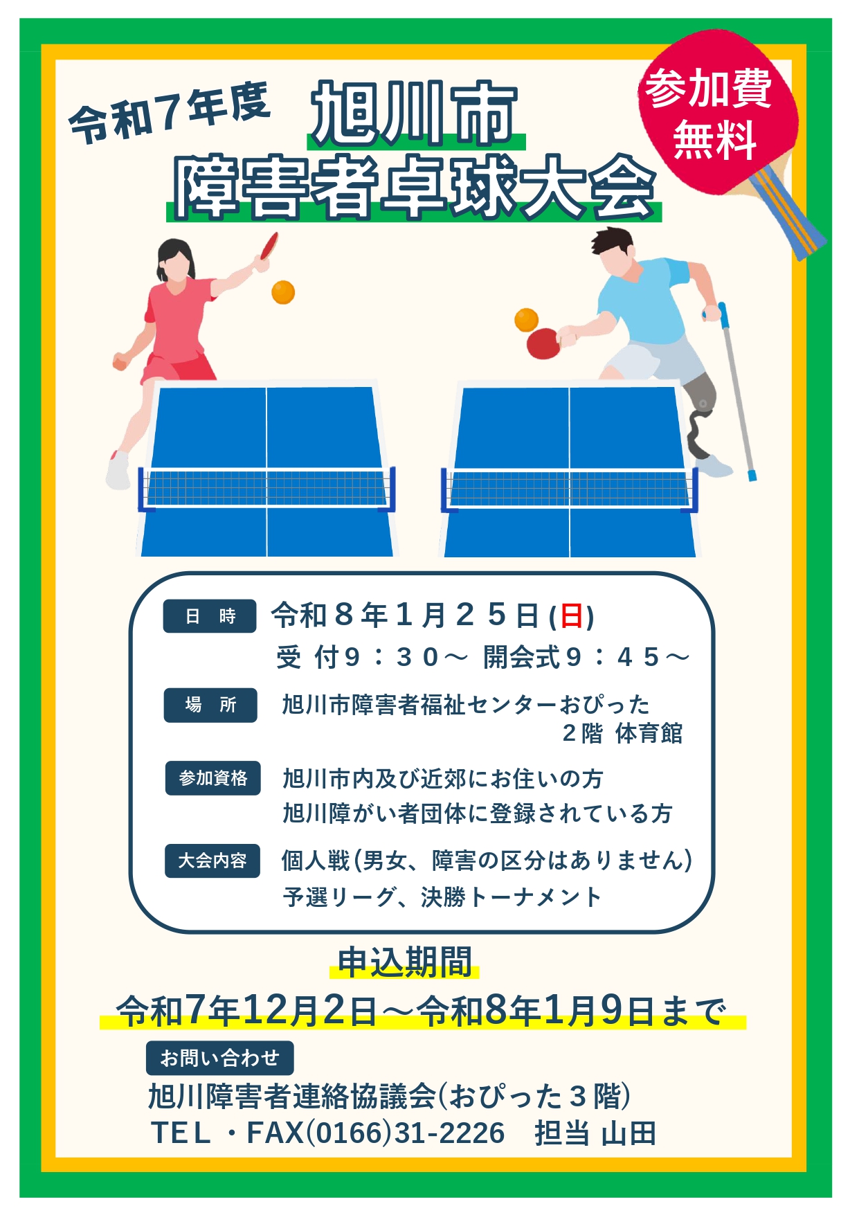 ②旭川障害者スポーツ協会は大会当日の競技運営のサポート等のため現地へ赴きますので、競技以外でのサポート等については原則、参加者・ 各団体等の責任において対応願います。